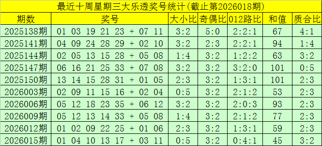 第2026018期大乐透星期三奖号分析: