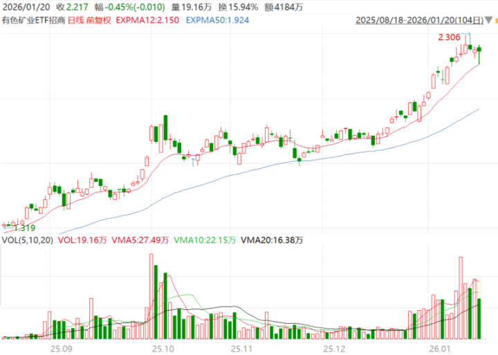 有色矿业ETF招商(159690)跟踪有色金属矿业指数聚焦资源品上游,黄金、铜、铝等关键金属权重占比近6成。截至1月19日,有色矿业ETF招商(159690)跟踪的中证有色金属矿业指数近一年涨幅达119.65%,近十年累计涨幅206.51%,领跑主流有色指数。