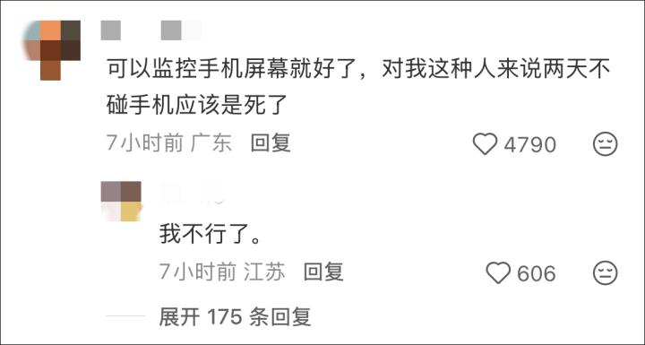 一位网友说:“可以监控手机屏幕就好了,对我这种人来说两天不碰手机应该是死了。”