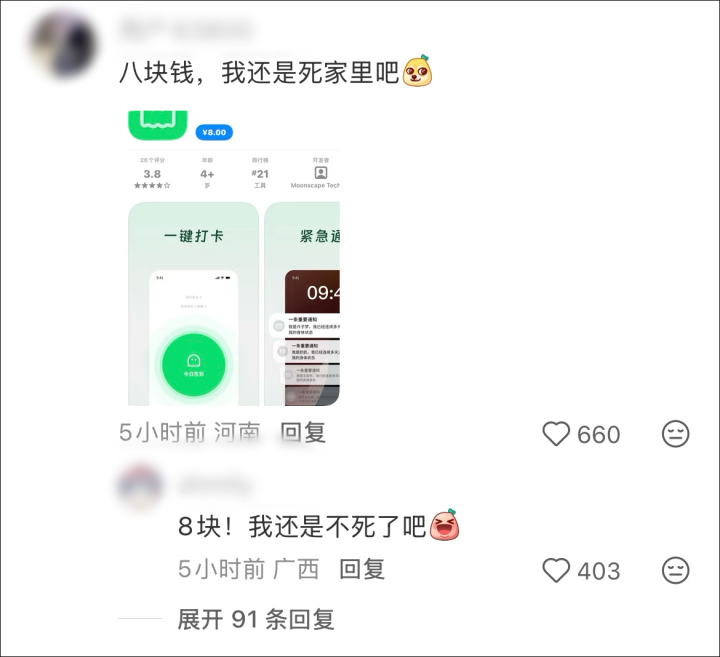 还有网友发现,博主晒出的截图是免费下载,不过昨天开始收费1元,“今天涨价了,要8元。”